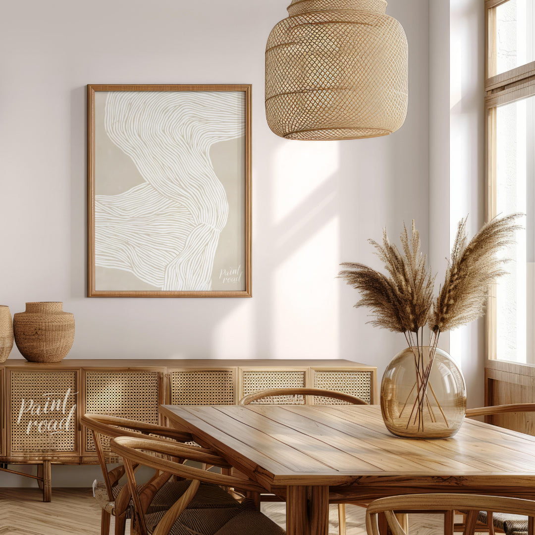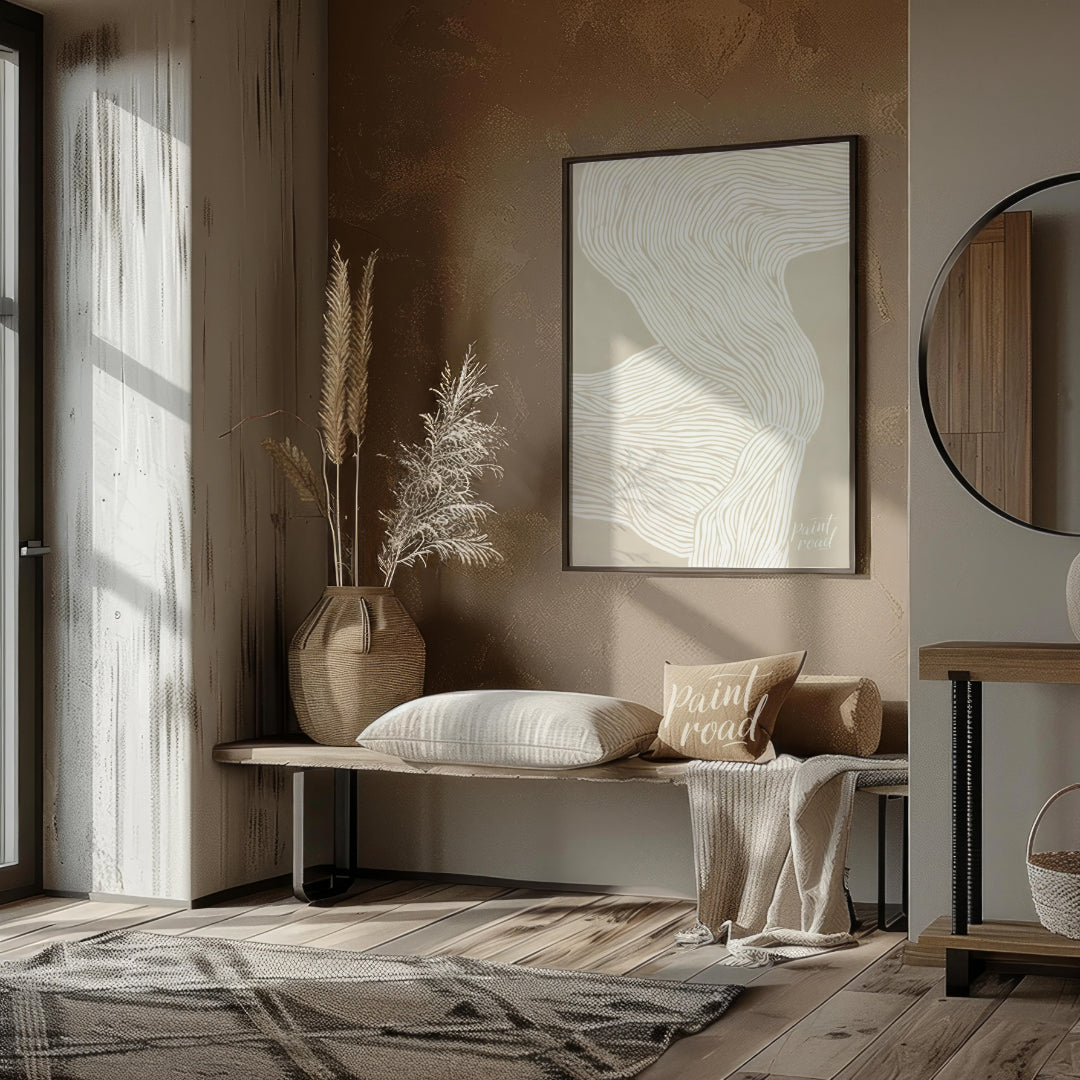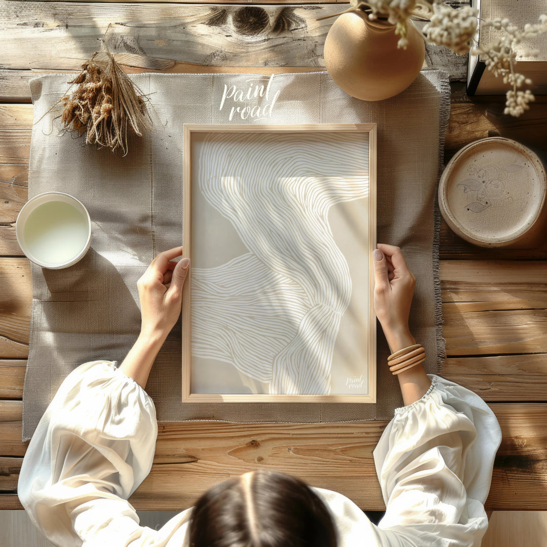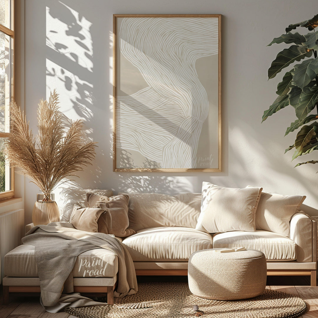 """Whisper Lines"" presents an abstract composition of delicate, flowing lines against a soft, neutral background. The lines intertwine and curve, creating a sense of organic movement and subtle texture. The monochromatic palette and gentle gradations evoke a serene and contemplative atmosphere. This piece balances a sense of simplicity with intricate detail, inviting the viewer to explore the nuanced interplay of line and form. The artwork's ethereal quality and subtle depth suggest a whisper of movement, making it a captivating visual experience."