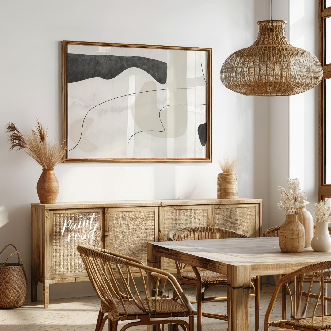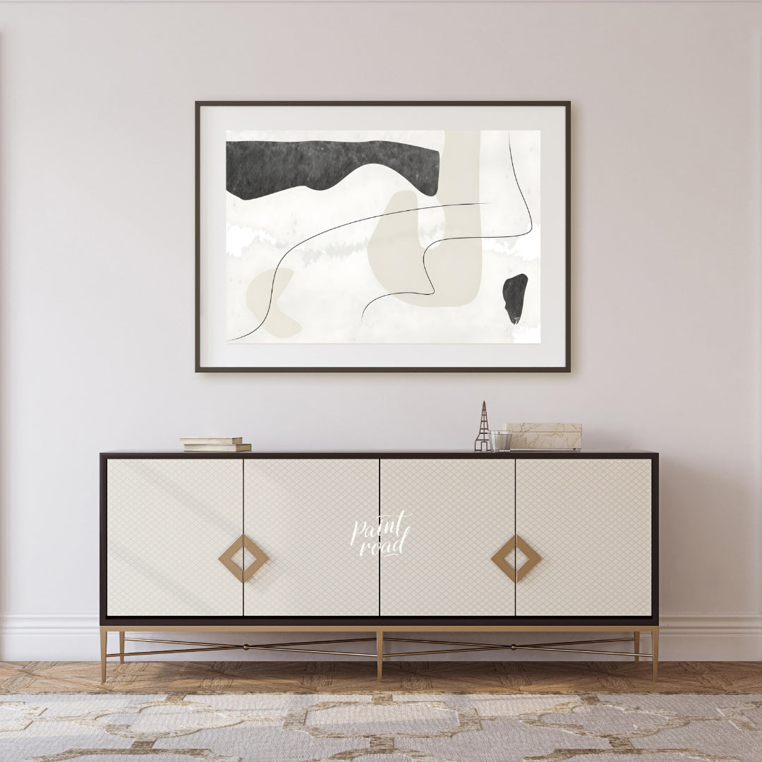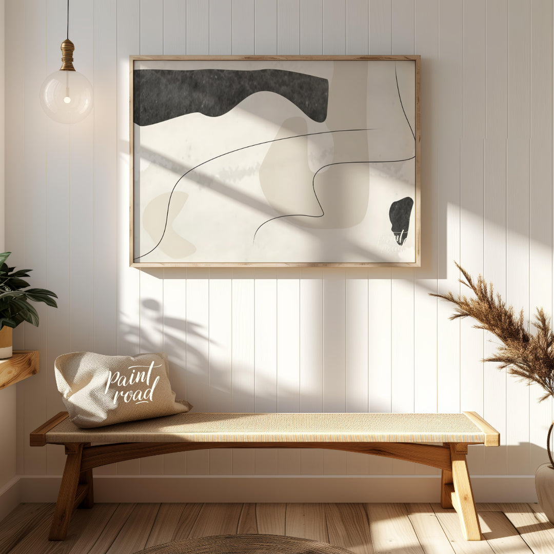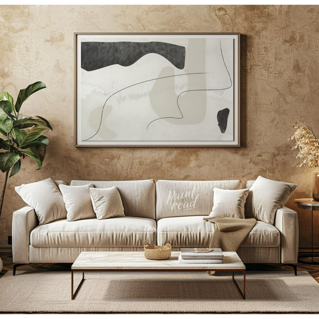 """Whispered Forms"" presents an abstract composition with a delicate interplay of soft shapes and lines against a textured, neutral background. The artwork evokes a sense of quiet contemplation and subtle depth, with the forms appearing to float or emerge from the surface. The thin, meandering lines add a sense of movement and fragility. This piece balances a sense of simplicity with a touch of mystery, inviting the viewer to explore the nuanced interplay of form and space. The artwork's monochromatic palette and subtle gradations suggest a serene and contemplative atmosphere."